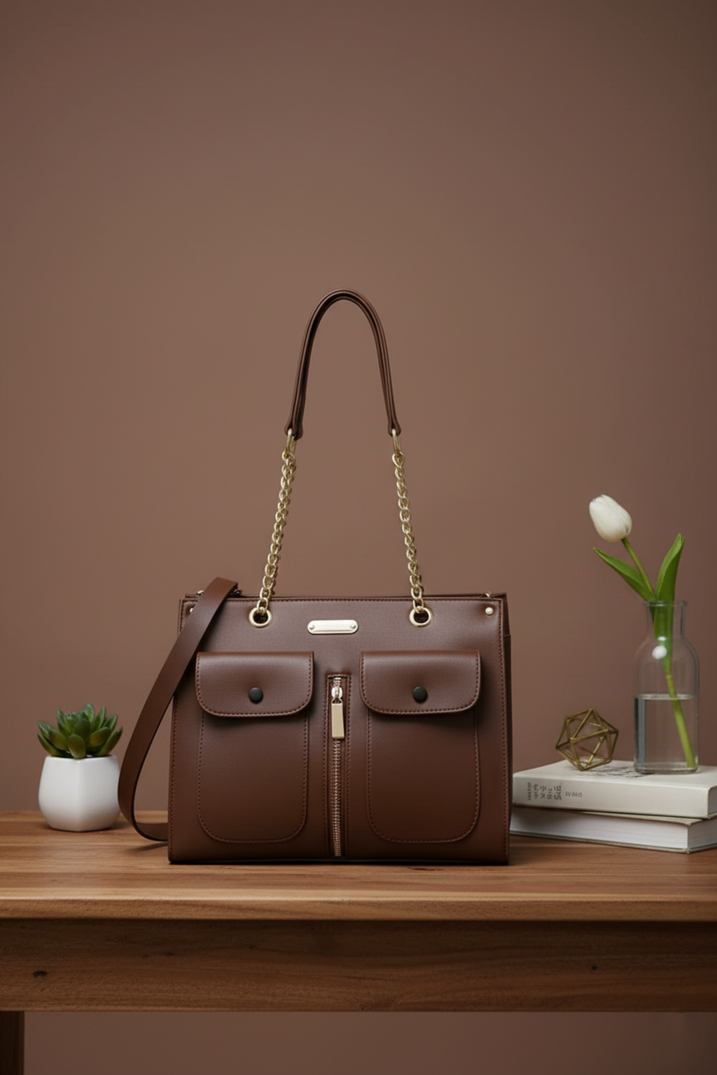 Brown Formal Shoulder Bag