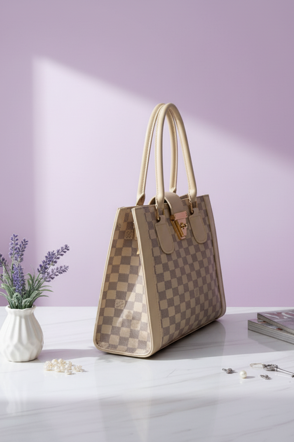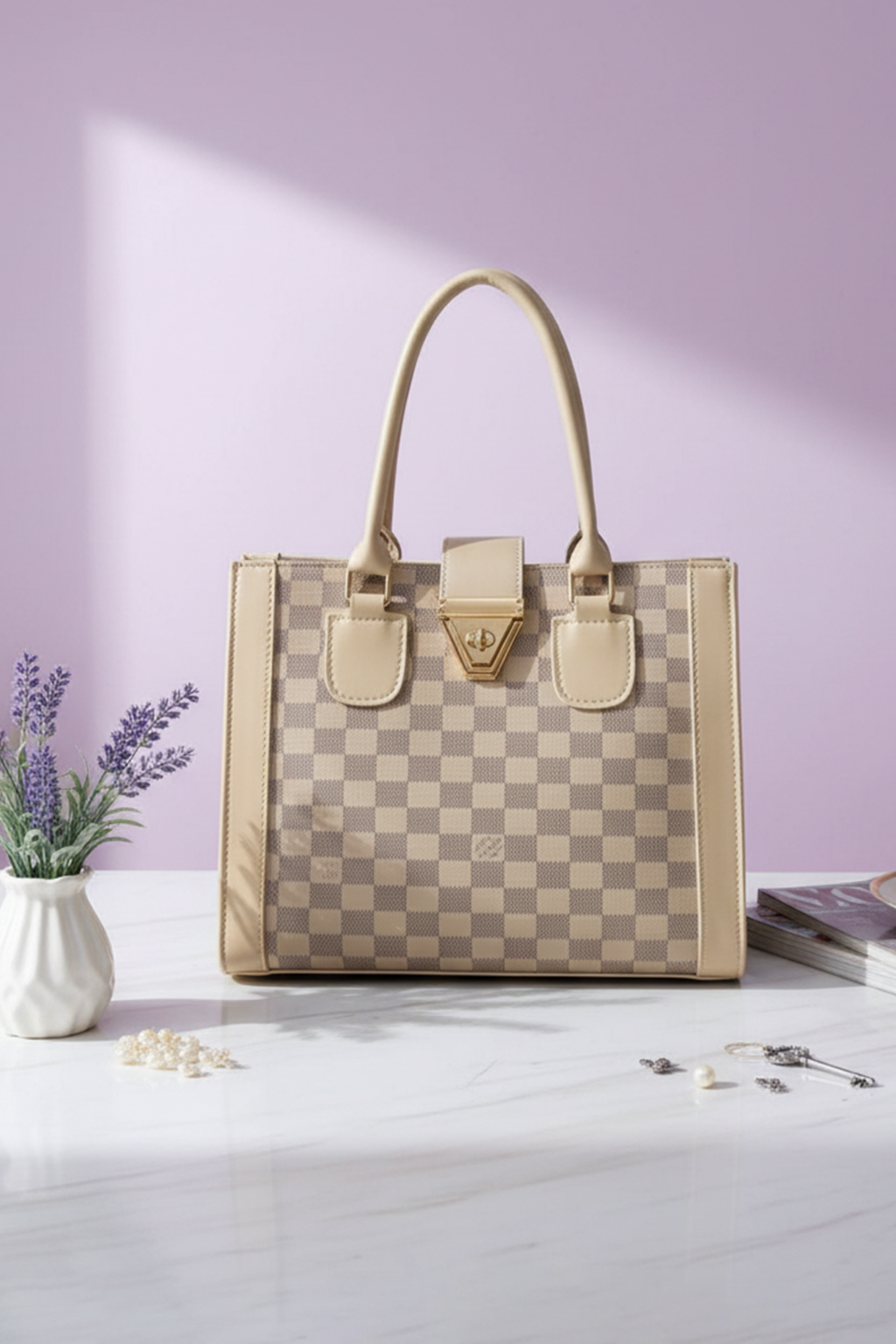 Elevate your look with this stunning Dior-inspired handbag, crafted to blend timeless elegance with modern sophistication. Featuring a bold Creem and Creem checkered pattern, this premium accessory is made from high-quality synthetic leather that offers both durability and a luxurious feel.
