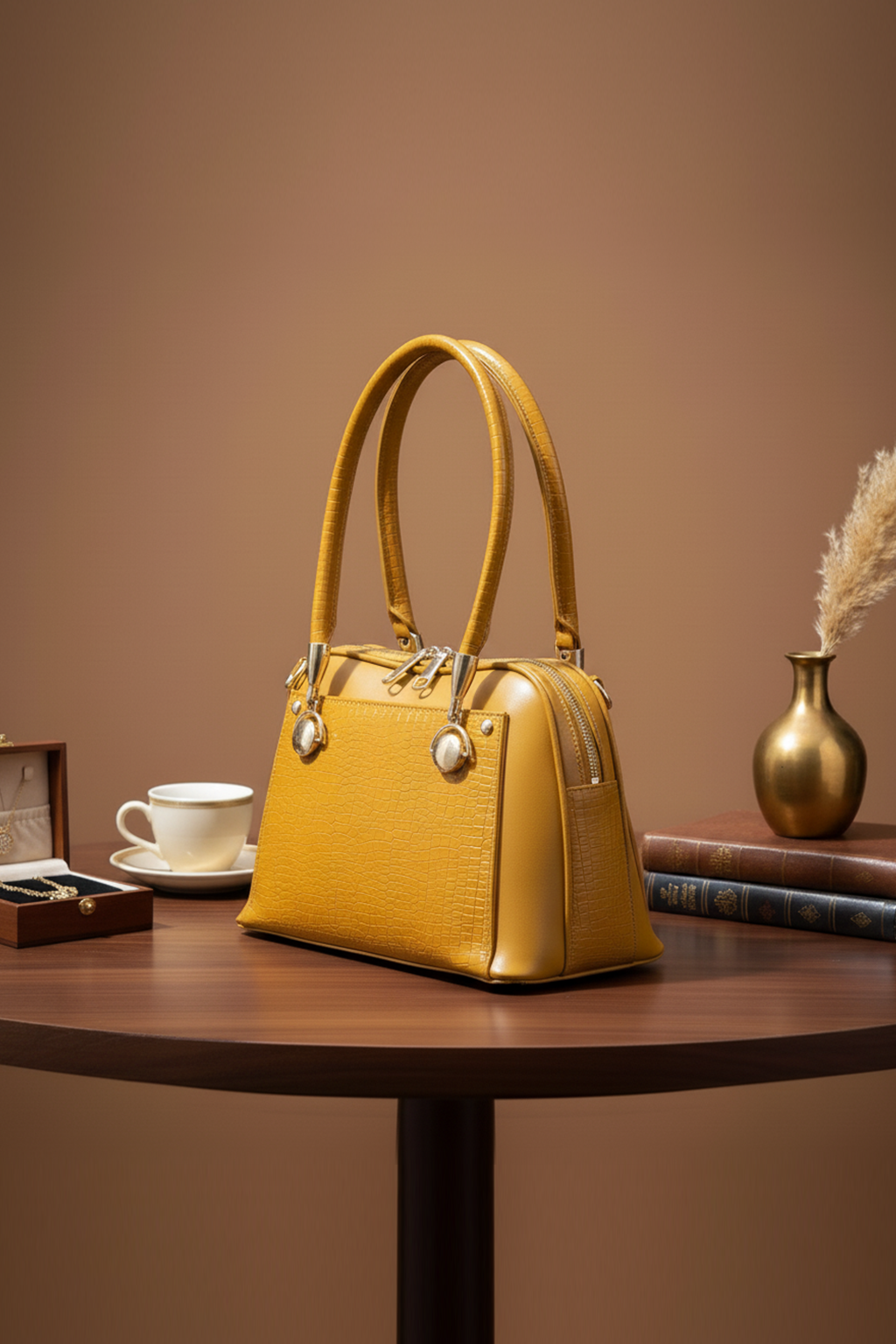 Turn every head with the Mustard Yellow —a striking shoulder bag that radiates confidence, elegance, and effortless style. Crafted from luxe faux leather in a bold crimson hue, this bag features a clean, structured design accentuated with gold-tone hardware and a sleek flap closure. Its compact yet roomy interior offers just the right amount of space for your phone, wallet, keys, and touch-up essentials—making it your go-to accessory for both workdays and evening soirées. A detachable strap allows for hands-free convenience, while the rich color pairs beautifully with traditional and contemporary outfits alike. Whether you’re headed to a formal dinner, office meeting, or festive occasion, Mustard Yellow complements the bold sophistication that defines Pakistani fashion.