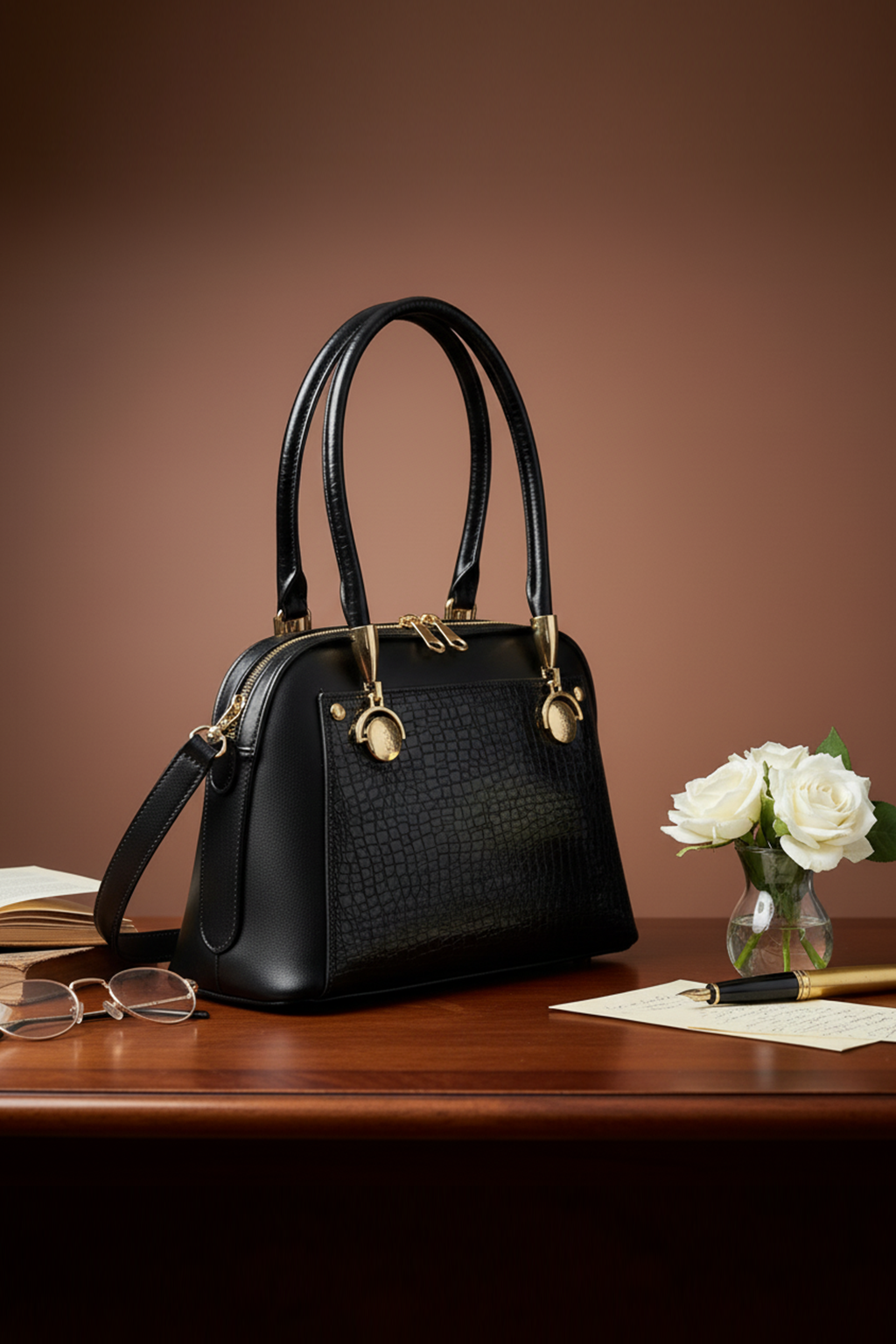 Turn every head with the Black —a striking shoulder bag that radiates confidence, elegance, and effortless style. Crafted from luxe faux leather in a bold crimson hue, this bag features a clean, structured design accentuated with gold-tone hardware and a sleek flap closure. Its compact yet roomy interior offers just the right amount of space for your phone, wallet, keys, and touch-up essentials—making it your go-to accessory for both workdays and evening soirées. A detachable strap allows for hands-free convenience, while the rich color pairs beautifully with traditional and contemporary outfits alike. Whether you’re headed to a formal dinner, office meeting, or festive occasion, Black complements the bold sophistication that defines Pakistani fashion.