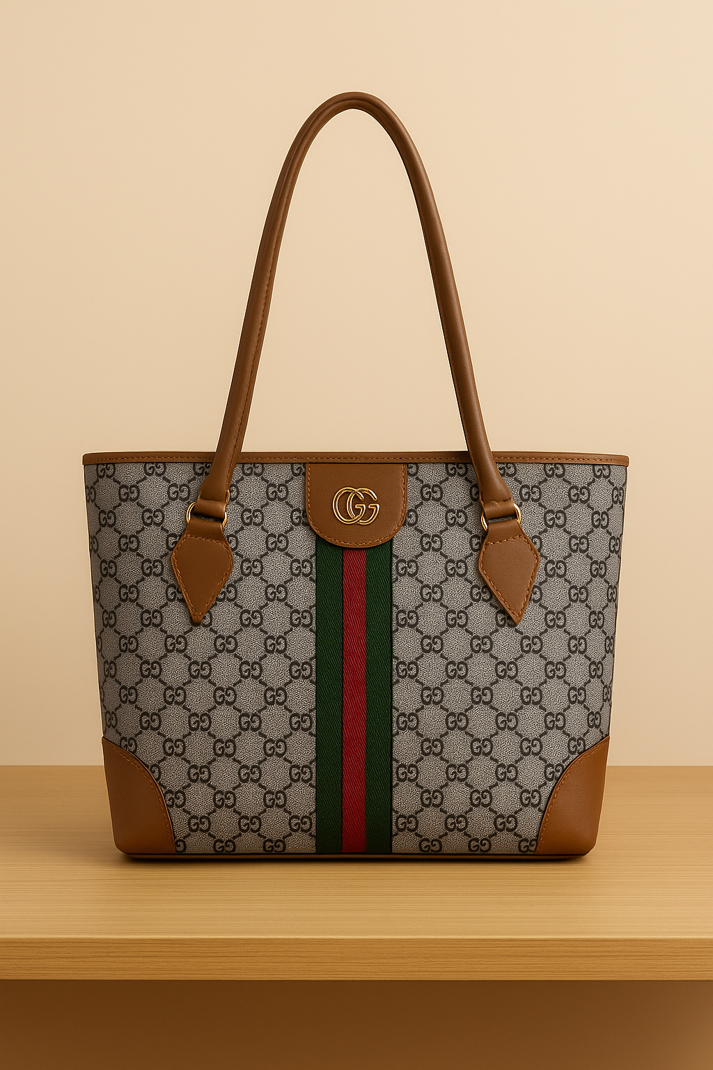 Description: Indulge in luxury with the Gucci Tote Bag, Made with the finest materials, this bag exudes elegance and sophistication. Perfect for any occasion, elevate your style and make a statement with this iconic accessory.