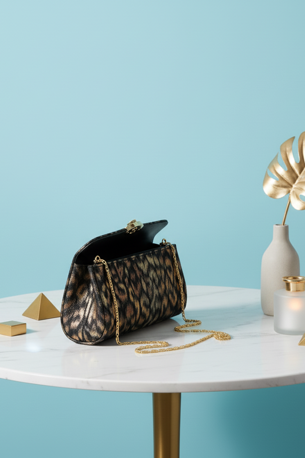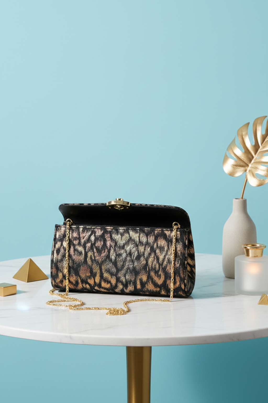 Leopard Print Clutch Bag with Chain Strap