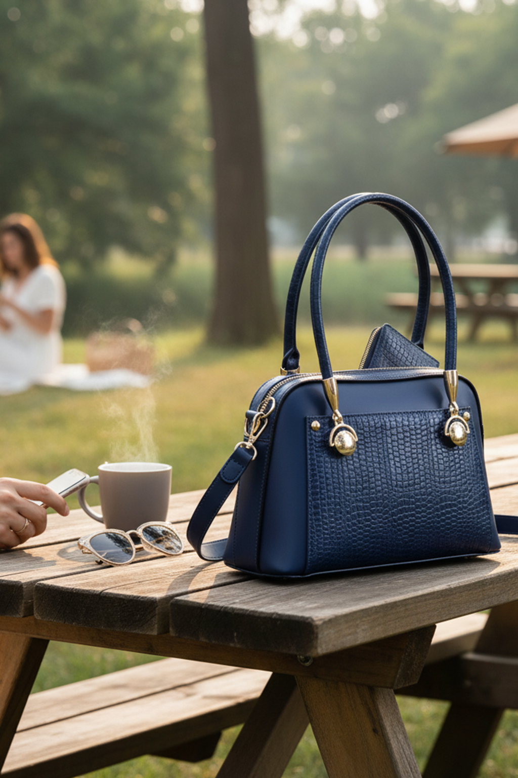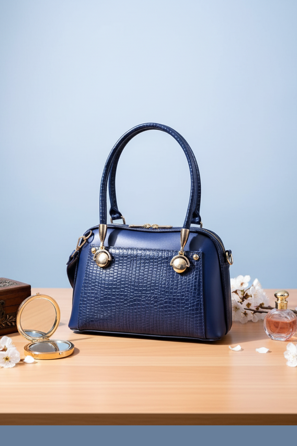 Turn every head with the navy —a striking shoulder bag that radiates confidence, elegance, and effortless style. Crafted from luxe faux leather in a bold crimson hue, this bag features a clean, structured design accentuated with gold-tone hardware and a sleek flap closure. Its compact yet roomy interior offers just the right amount of space for your phone, wallet, keys, and touch-up essentials—making it your go-to accessory for both workdays and evening soirées. A detachable strap allows for hands-free convenience, while the rich color pairs beautifully with traditional and contemporary outfits alike. Whether you’re headed to a formal dinner, office meeting, or festive occasion, navy complements the bold sophistication that defines Pakistani fashion.